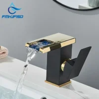 Schwarzer hoher LEDWasserfallWaschtischBadezimmerWasserhahn Deckmontage Mischbatterien fr