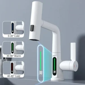 Waterfall Temperature Digital Display Basin Faucet Lift Up Down Stream Sprayer Hot Cold Water Sink Mixer Wash Tap For Bathroom