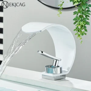 White Chrome Waterfall Basin Faucet Single Hole Deck Mount Single Handle Cold Hot Water Mixer Taps Bathroom Crane