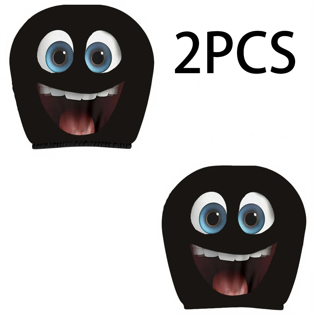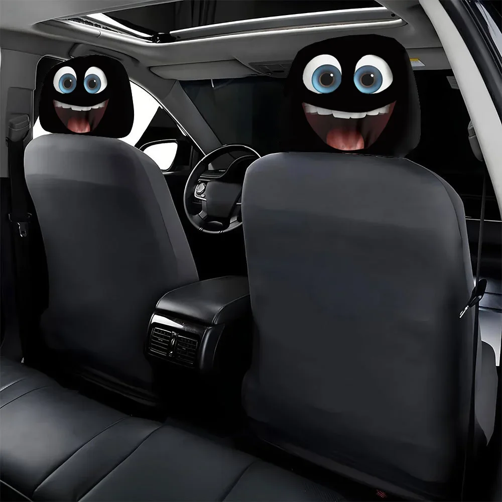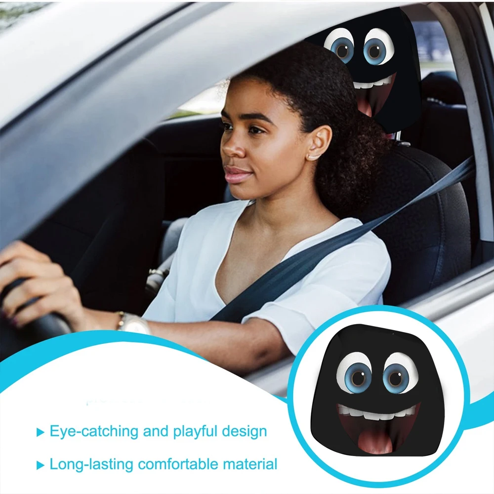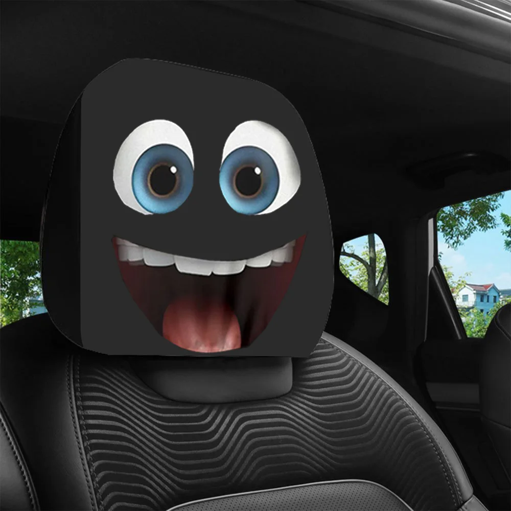 2PCS Double-sided Printed Smiling Face Car Headcase, Cute Fun Car Interior Personalized Decoration