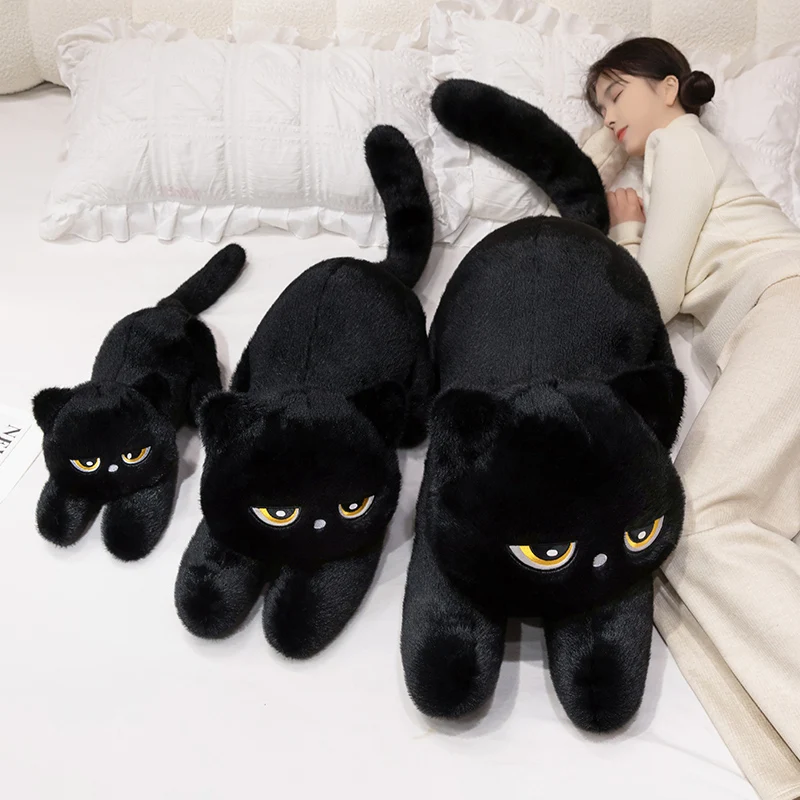 Black Cat Plush Pillow Soft Stuffed Lying Cat Cushion Cute Sleeping Cat Design Lovely Birthday Gift Idea for Cat Lovers