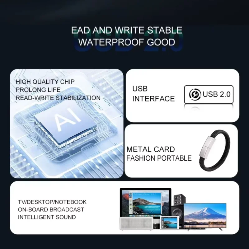 Bracelet USB Flash Drive 64GB Black Wristband Pen Drive 32GB Creative Gifts Memory Stick 16GB Water Proof External Storage 8GB