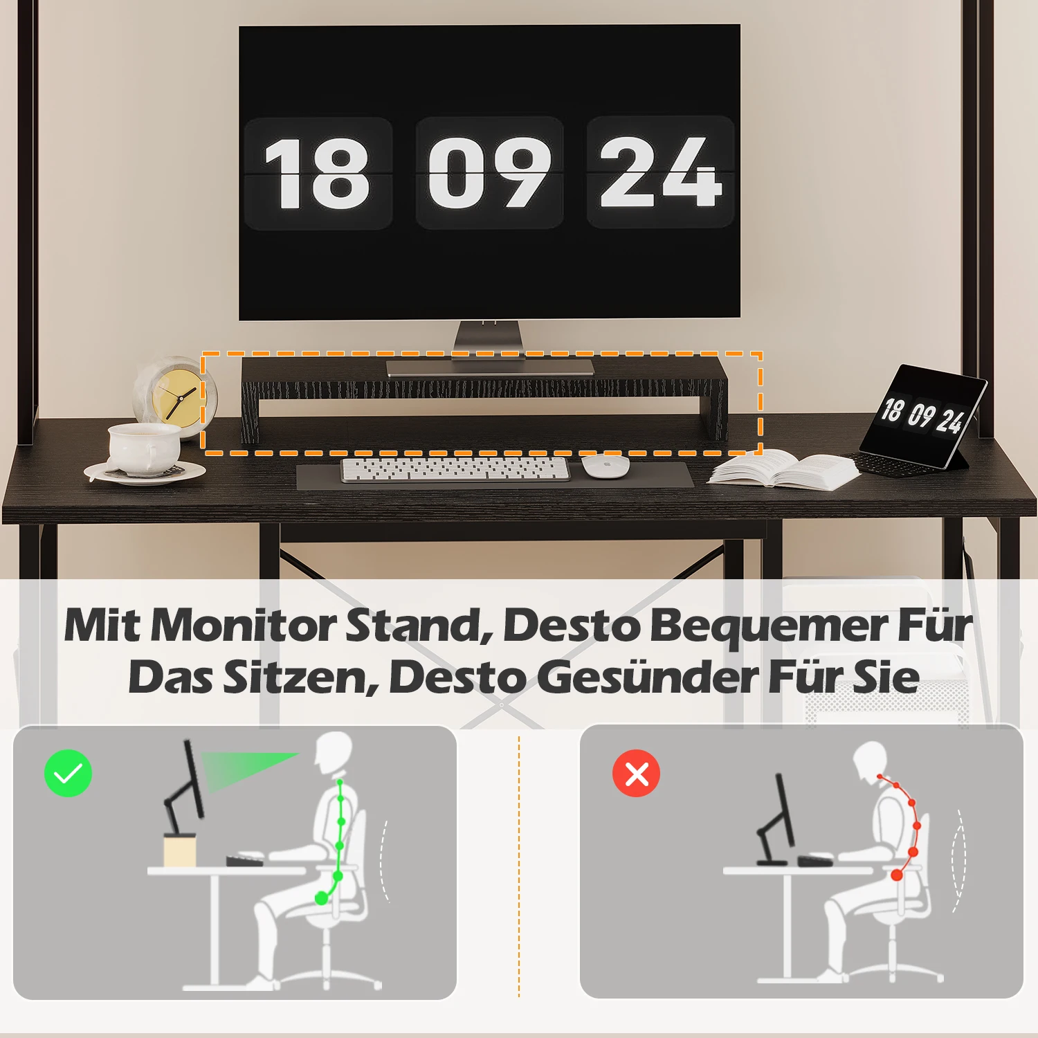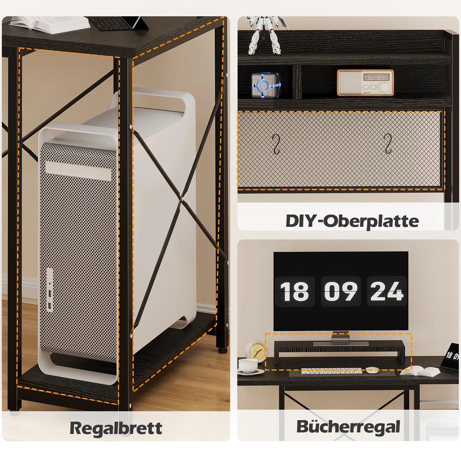 Devoko Gaming table with LED & sockets, 120×60 cm DIY Plug desk with Shelf Shelves