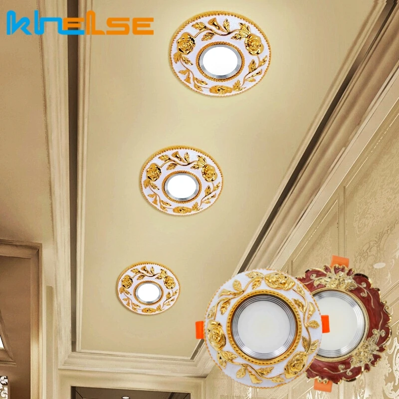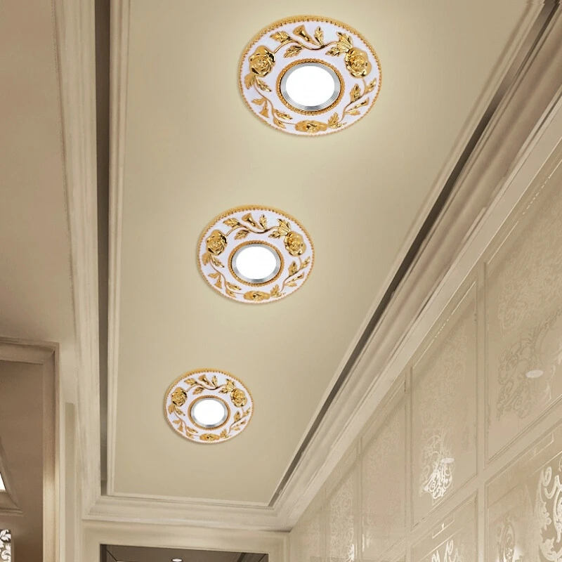 European Retro Gold Garland LED Ceiling Lamp 3W/7W/10W Recessed Luxury Resin Downlights Corridor Bedroom Kitchen Decor Spotlight
