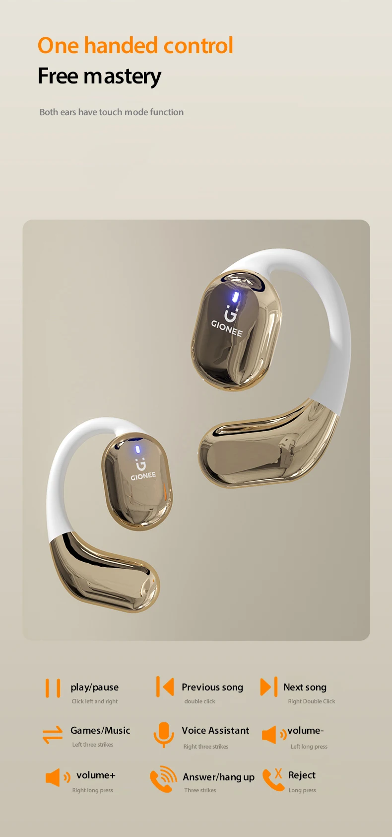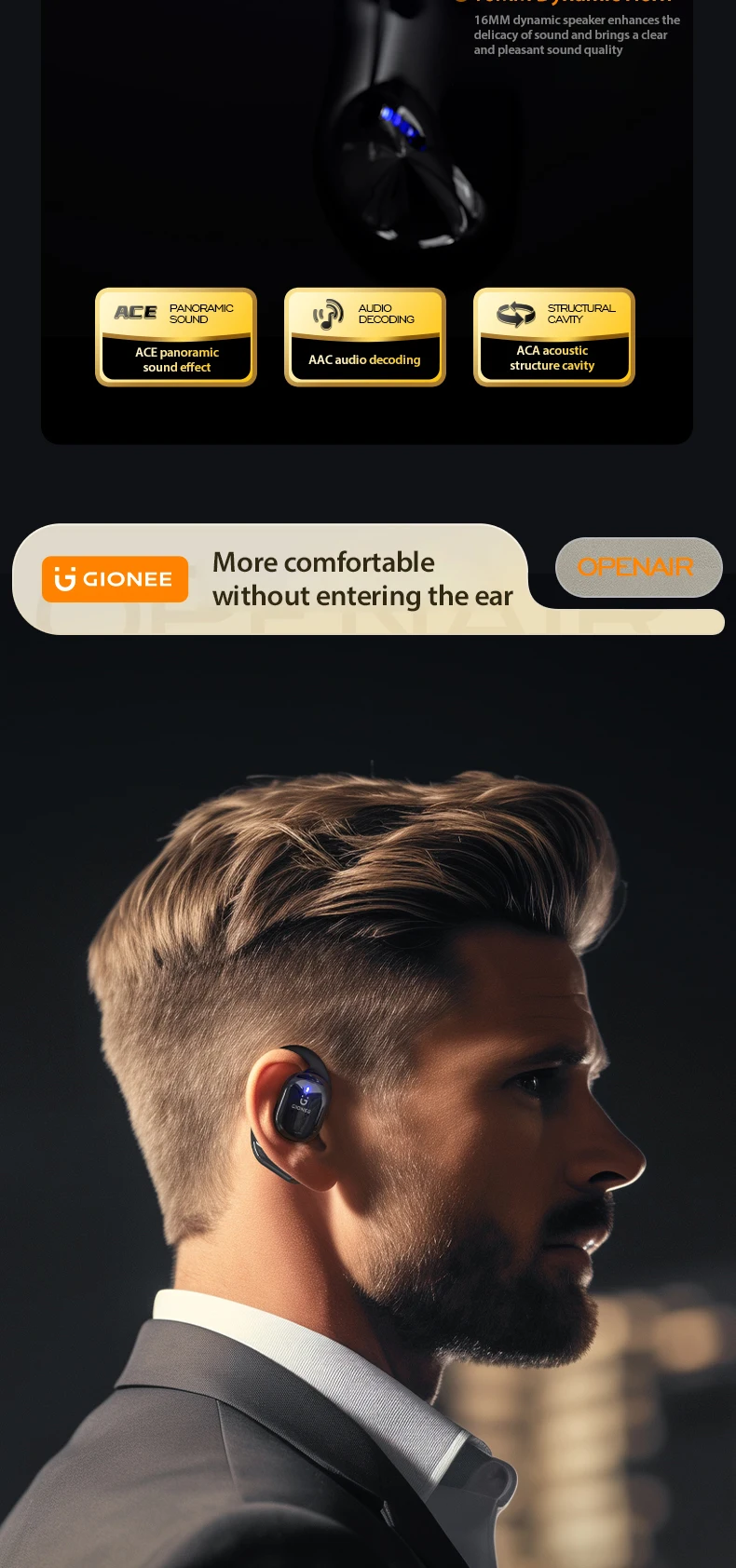 GIONEE JL001 Bluetooth Earphone OWS Wireless Headphones Long Battery Life Sports Waterproof Headsets extra bass with microphones