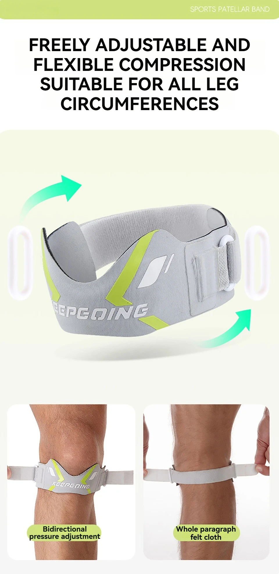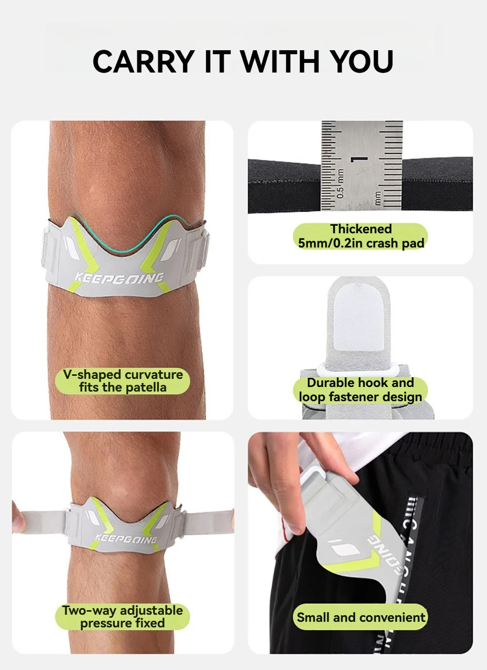 Fully Adjustable Patellar Tendon Support Strap: Double-knot Design; Fully adjustable; The perfect-fit of the strap reduces the pressure on the patella tendon and thus helps to provide extra support while running or exercising; Regain your stability; Especially crafted for people suffering from knee instability