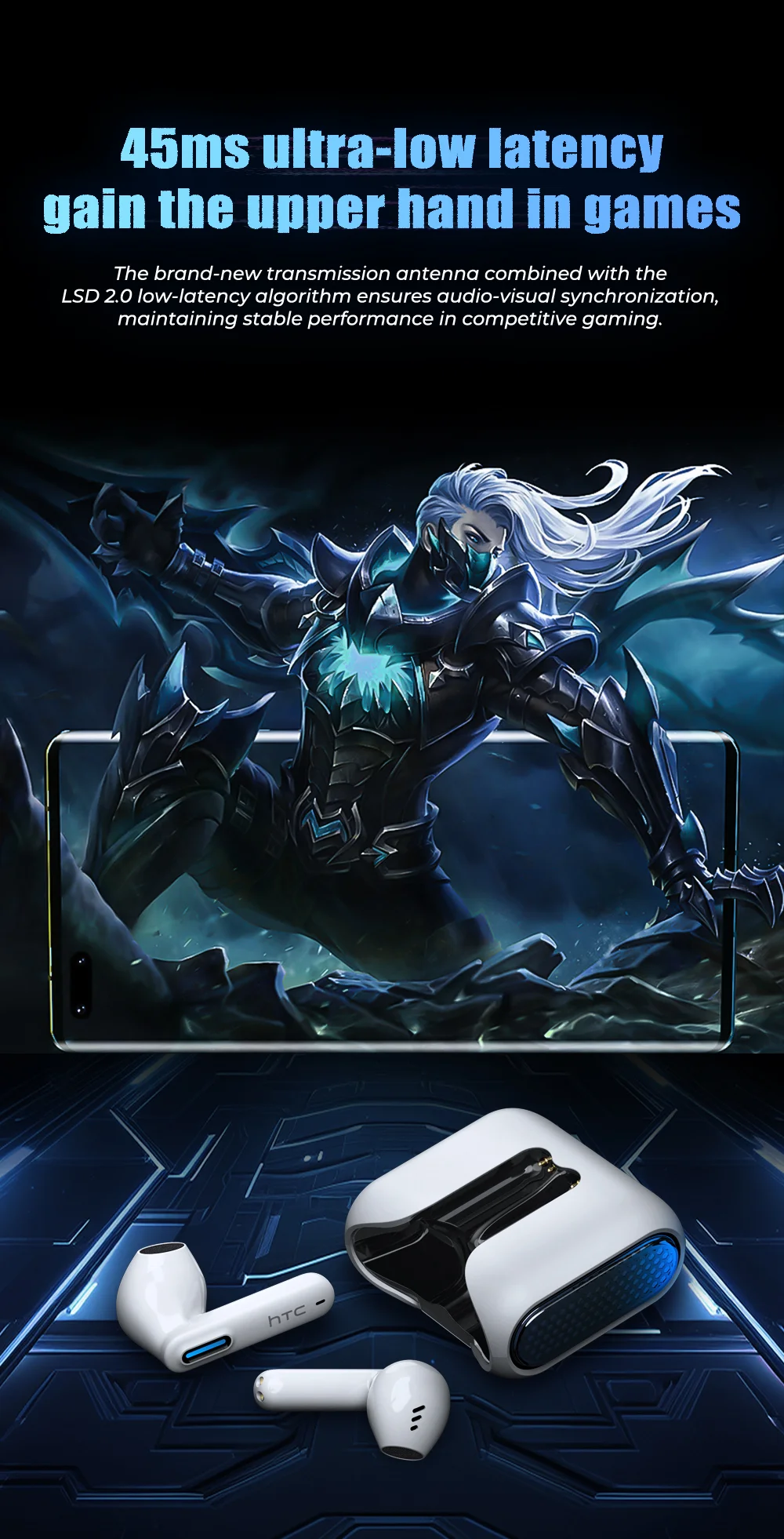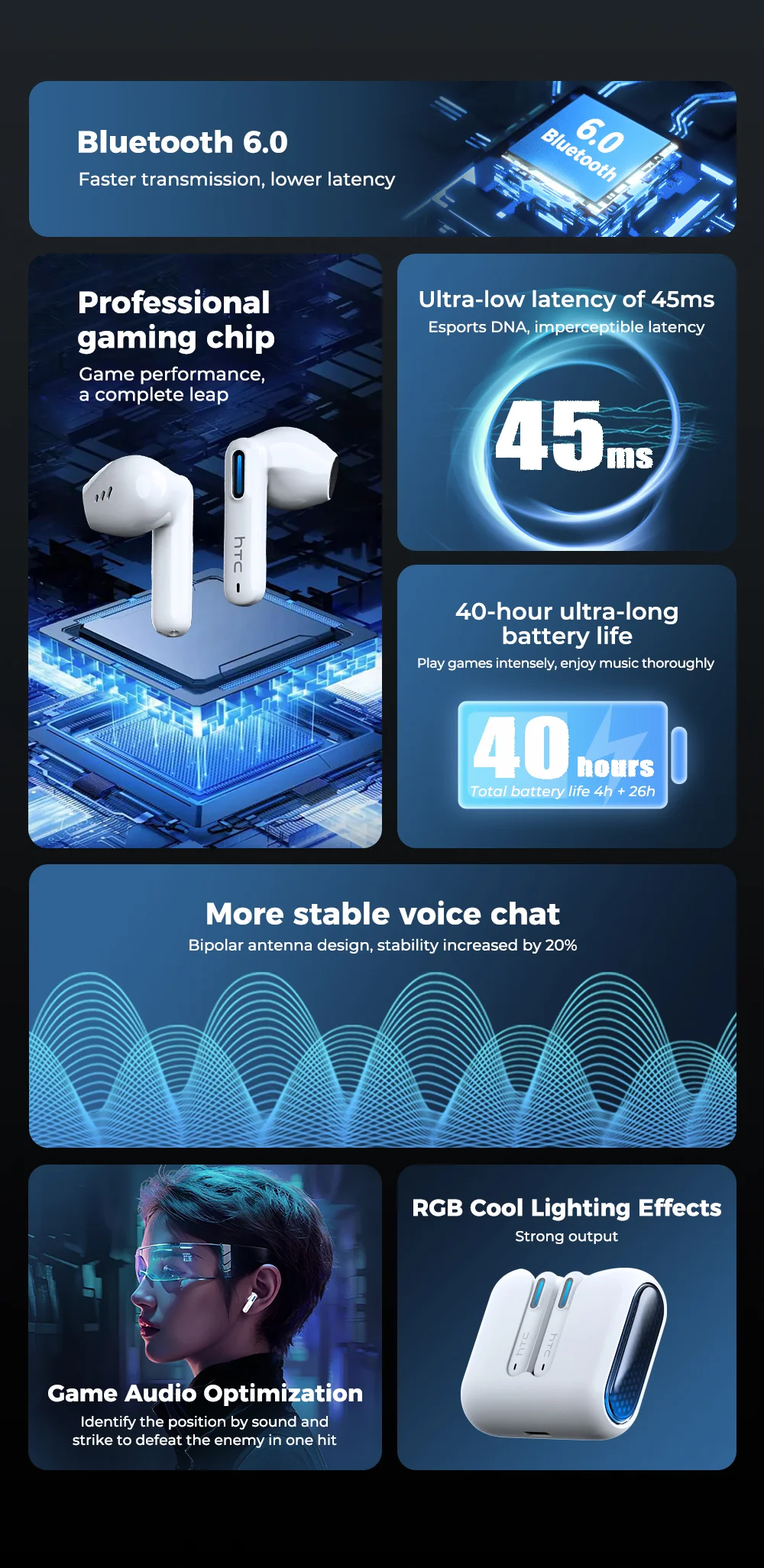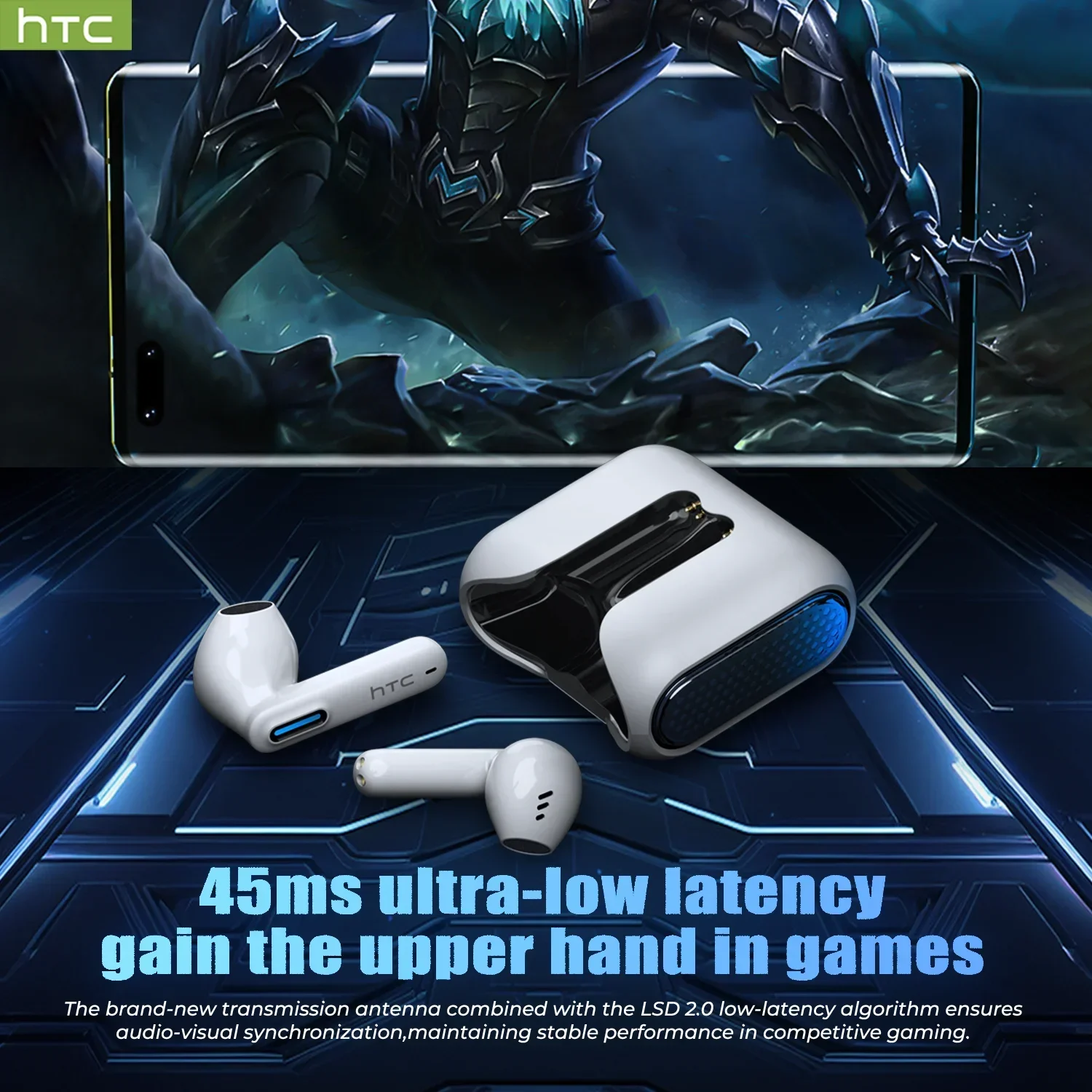 HTC NE49 Bluetooth Earphones V6.0 TWS Sports Wireless Headphones Ultra low latency Game Headset Earbuds Long life