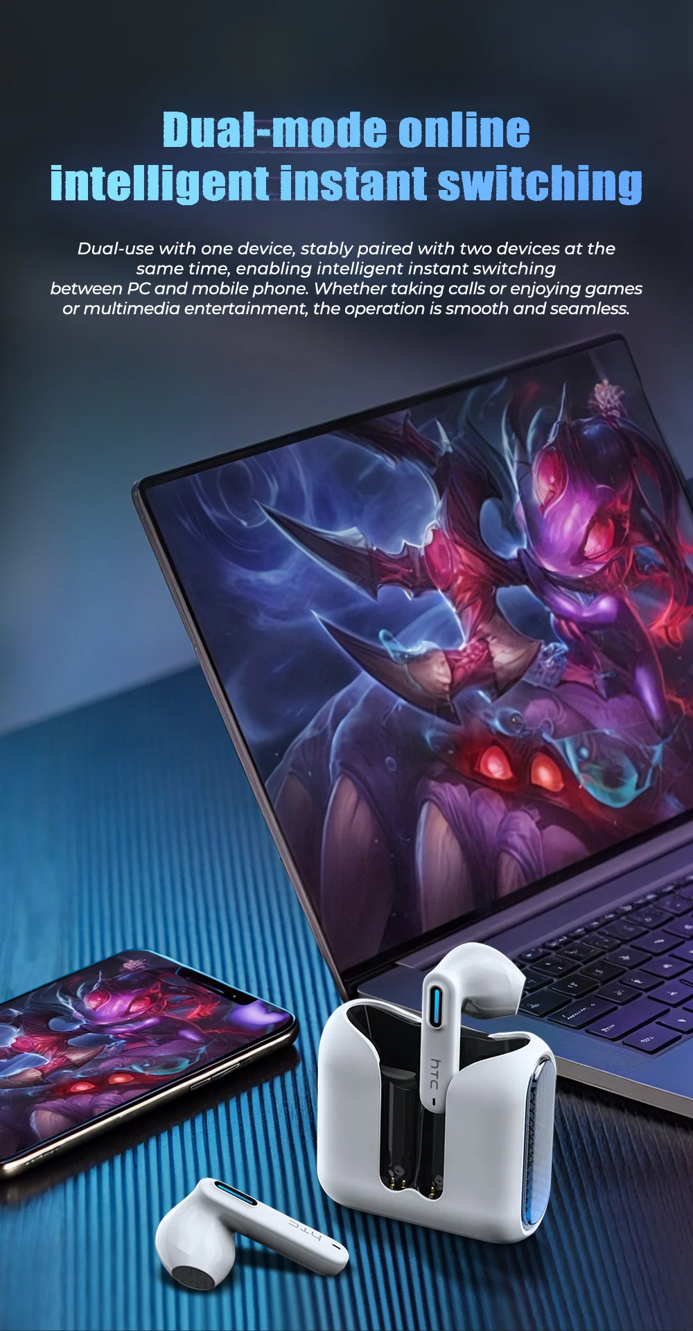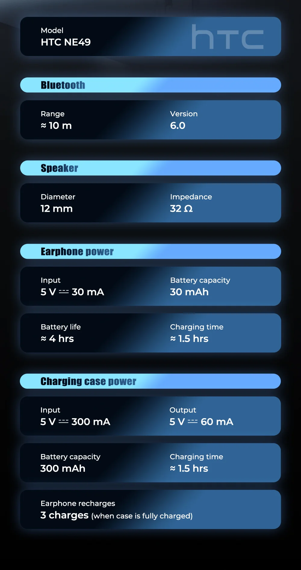 Be the first to review “HTC NE49 Bluetooth Earphones V6.0 TWS Sports Wireless Headphones Ultra low latency Game Headset Earbuds Long life”