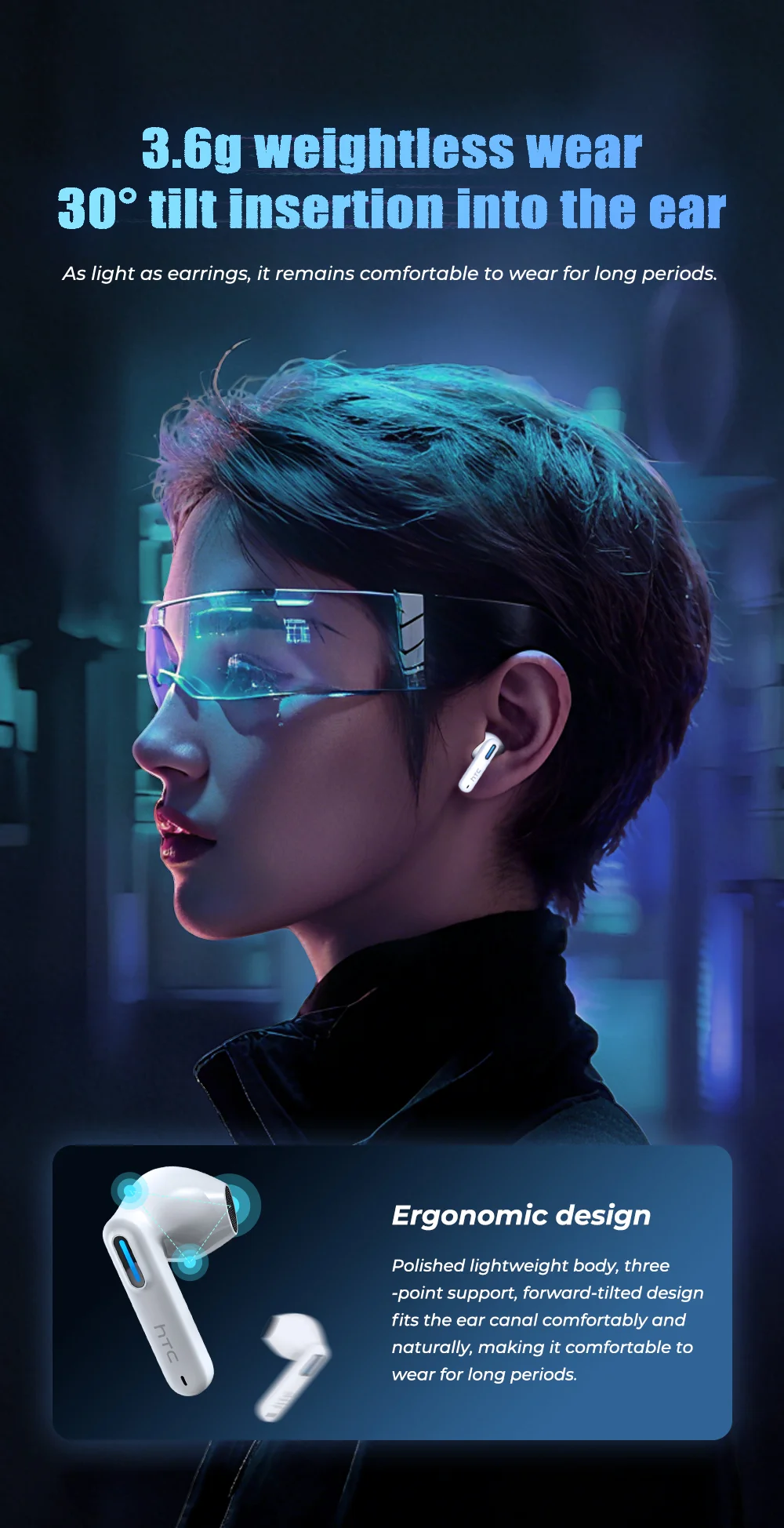 Ergonomic Fit: Liquid silicone eartips, ultra-lightweight (5g per earbud)