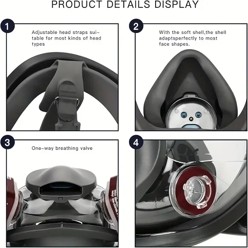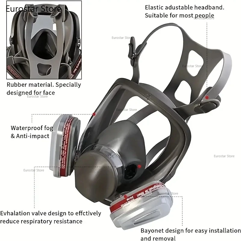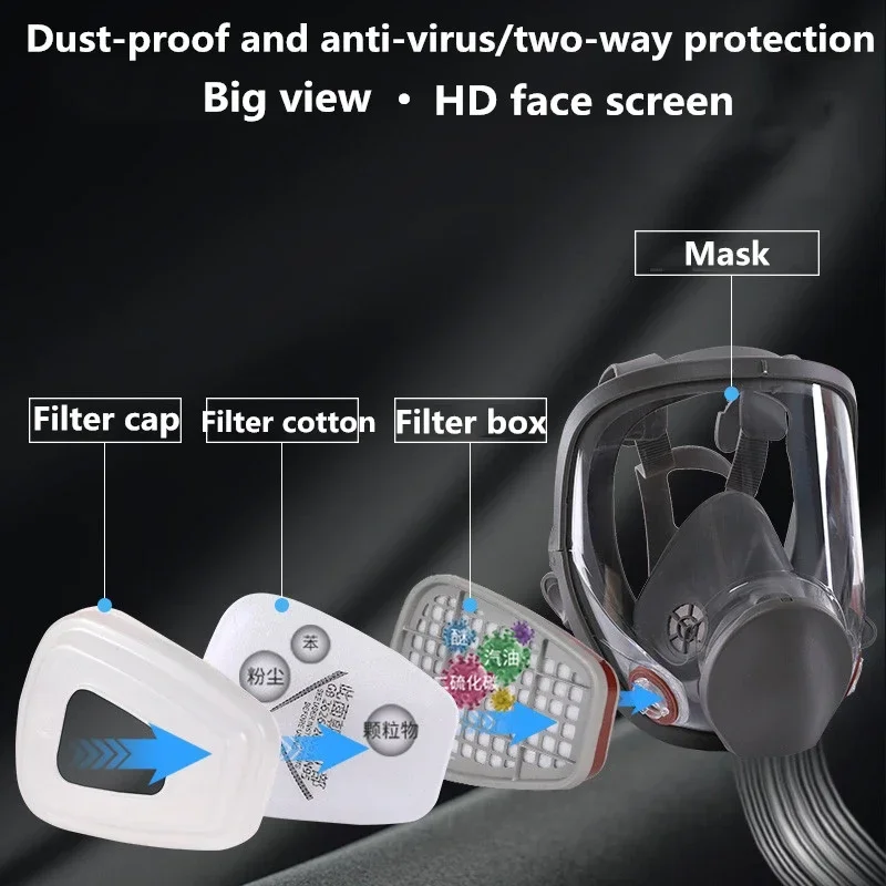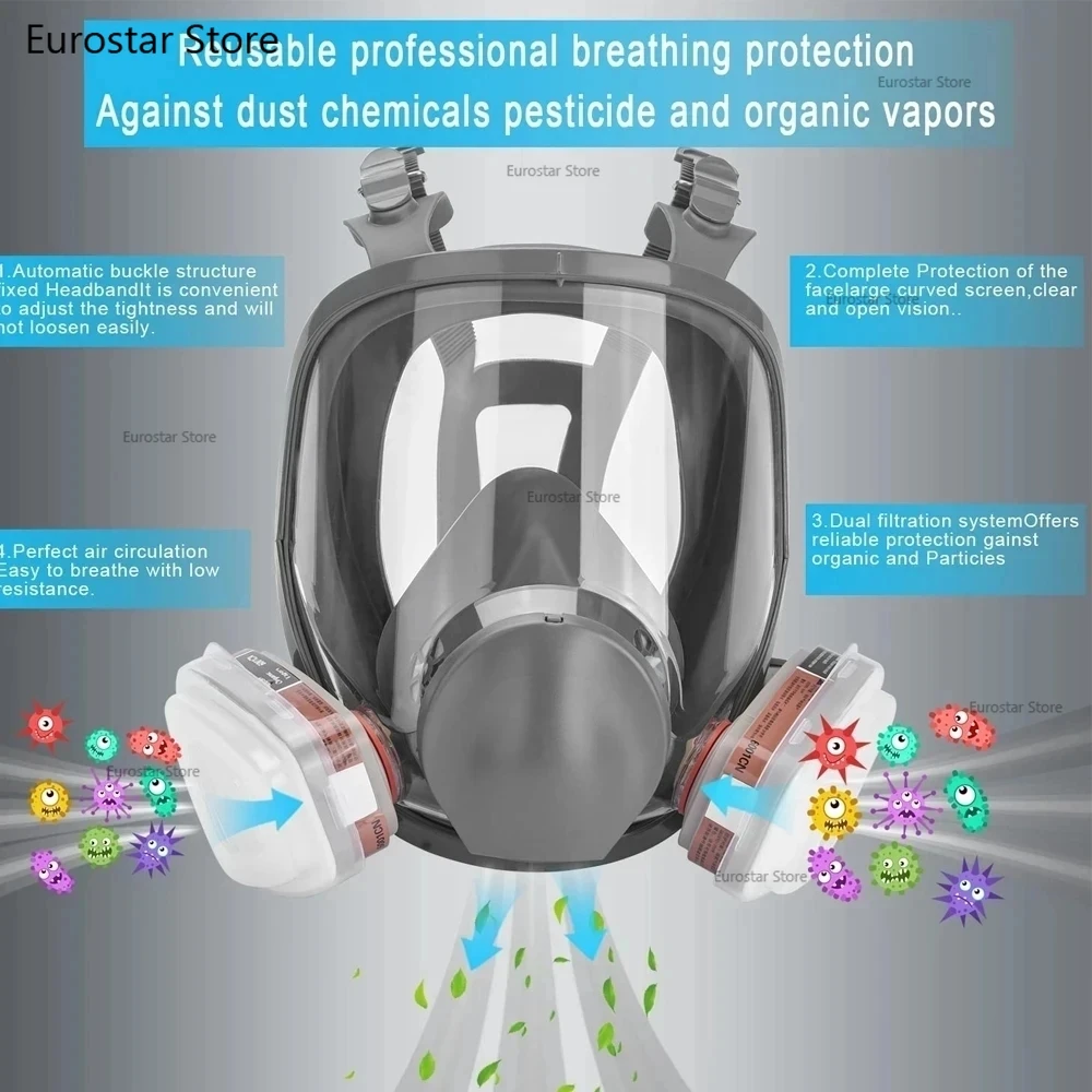 This mask have 6800's full protection function, Reusable gas mask with activated carbon air filter to prevent gas, paint, dust, chemicals and other work protection