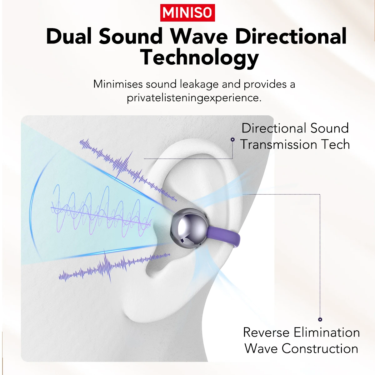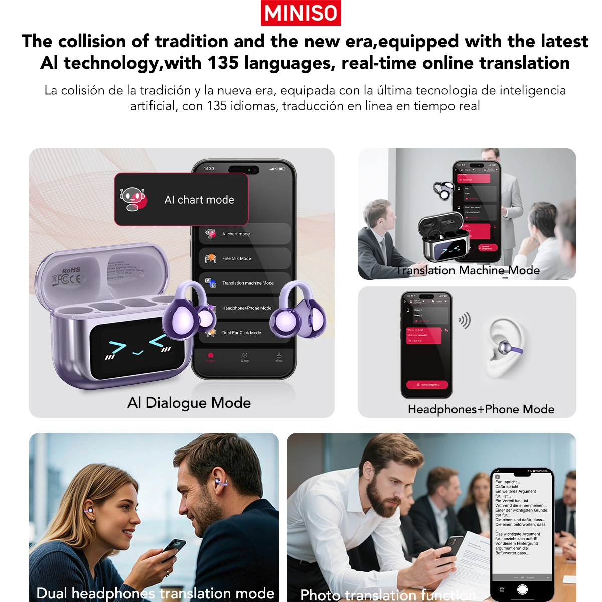 MINISO MS201 Bluetooth V6.0 Wireless Headphones OWS EarClip AI Translator Earbuds 60H Longlife Earphones with Full Color Screen
