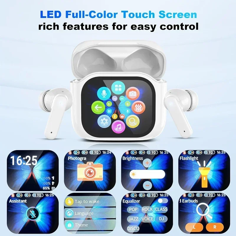 UYUXIO ANC ENC Noise Cancelling Wireless Earbuds with LCD Screen High Sound Quality Earphone Headphone Touch Headset Ear Buds