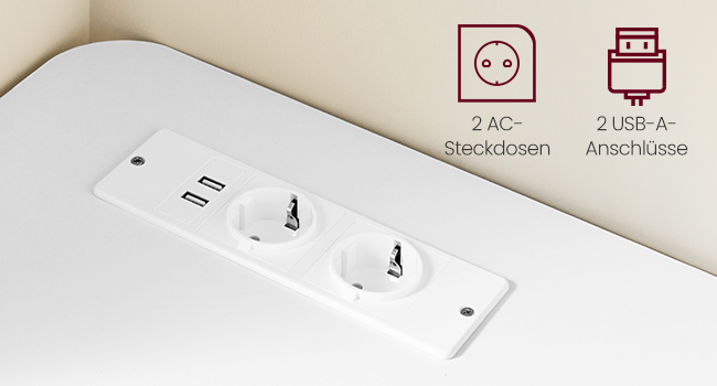 Integrated sockets bar: 2 AC sockets and 2 USB ports allow convenient charging.