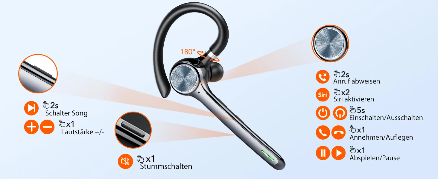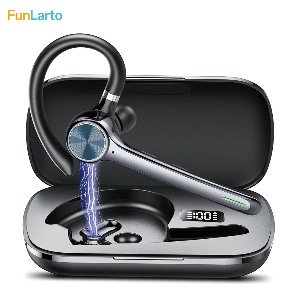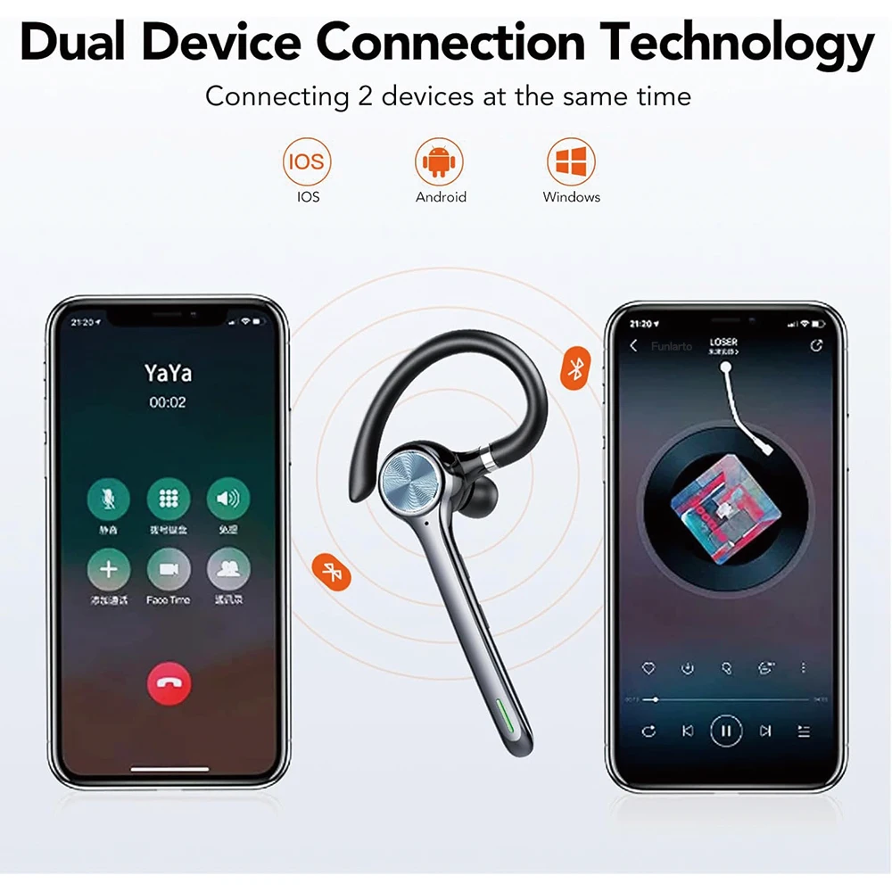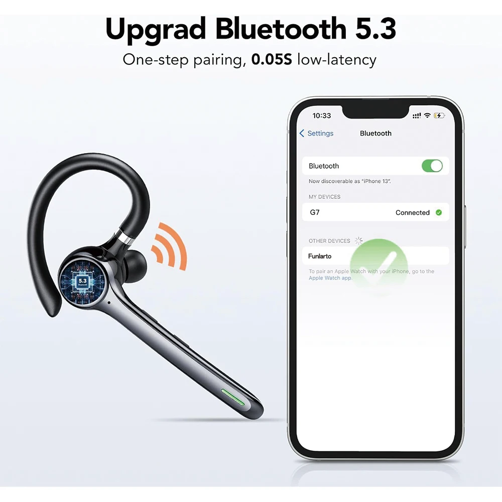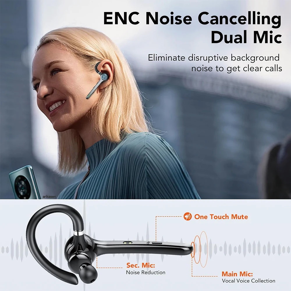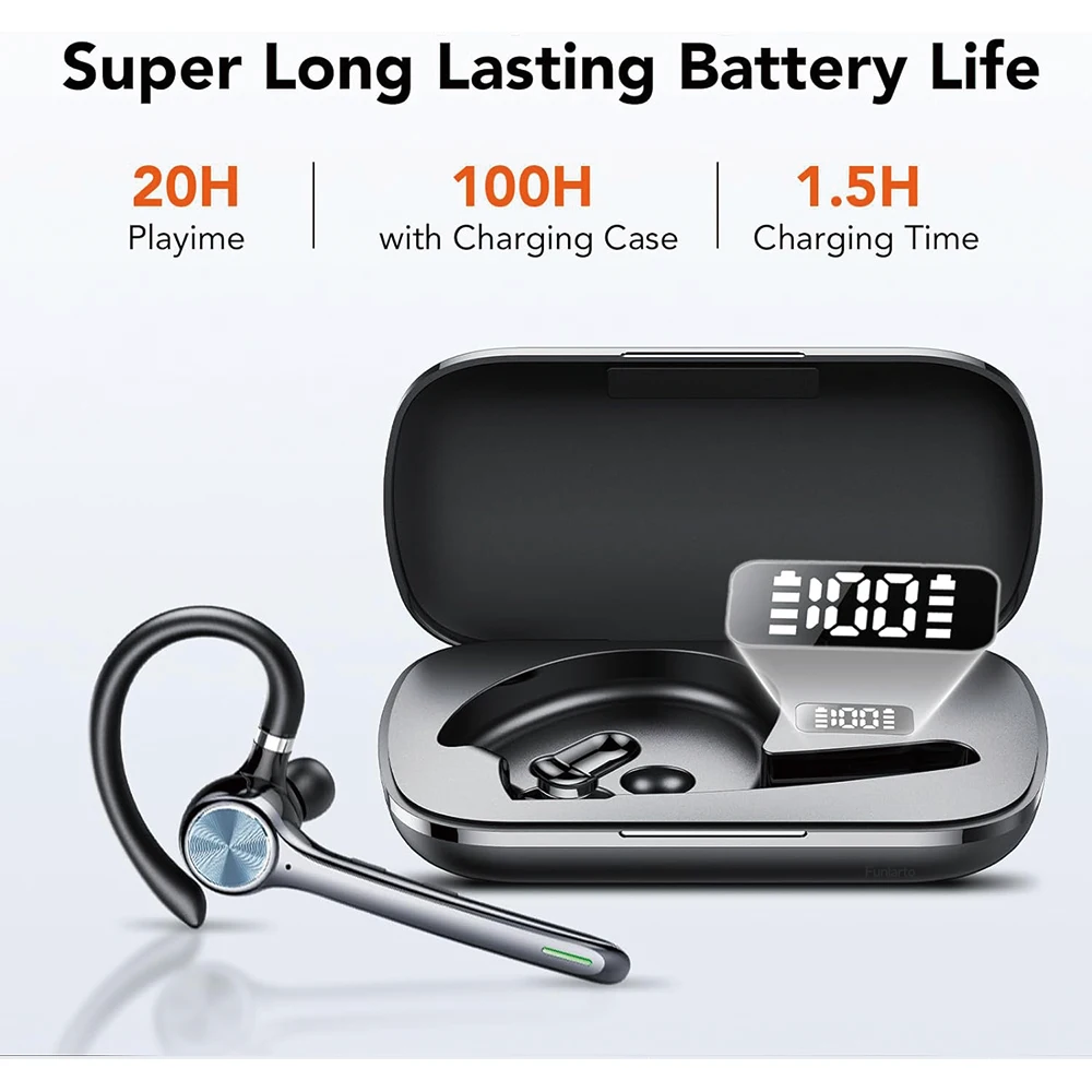 Wireless Bluetooth Headset Single-Ear Earpiece with ENC Noise Canceling Mic 100Hrs Talk Time LED Display IP7 Waterproof Mute Key